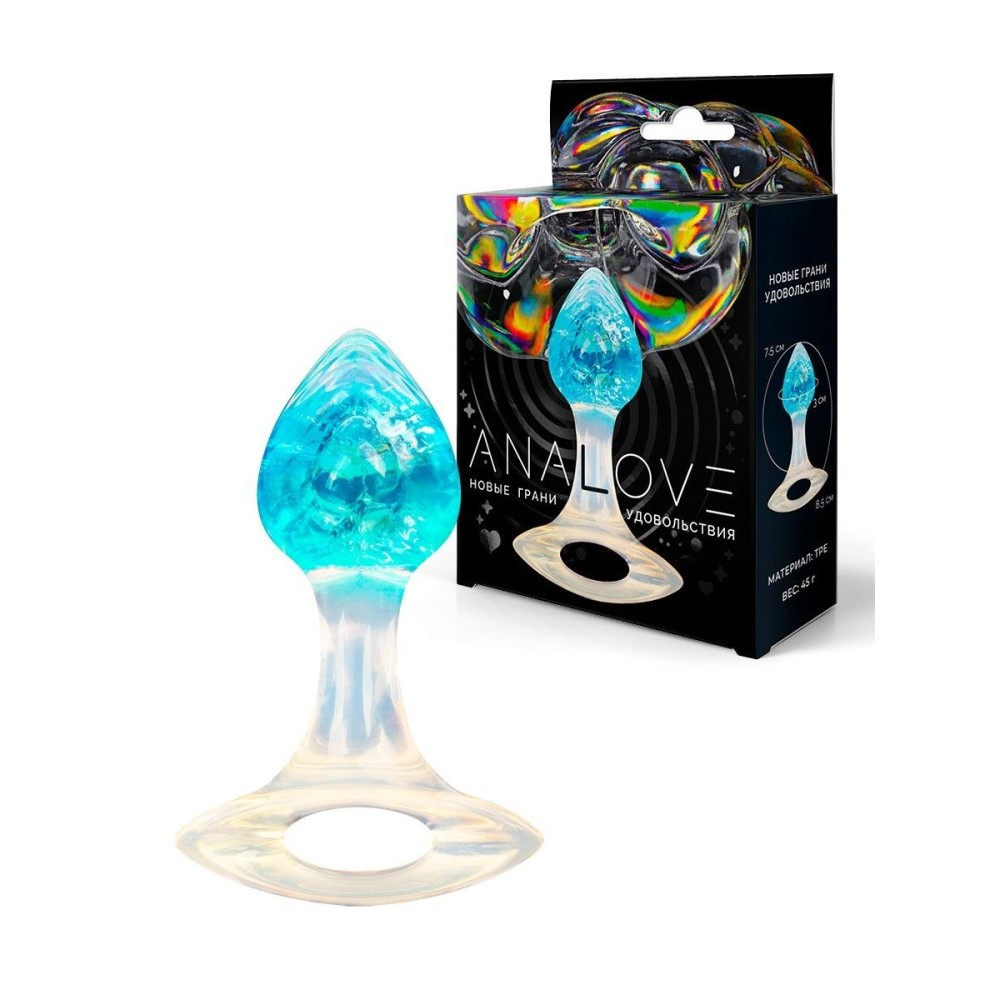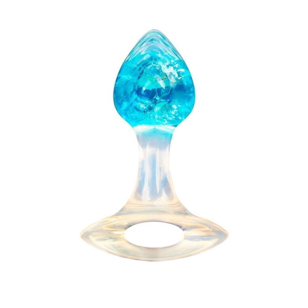 Голубоватая анальная пробка с ручкой - 8,5 см.