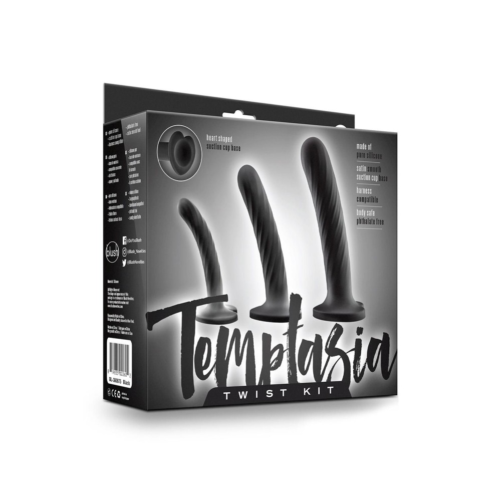 Набор из 3 стимуляторов со спиралевидным рельефом Twist Kit. В набор входят 3 фаллоимитатора разного размера, все с основанием-присоской. Идеальны для анальной стимуляции. Могут использоваться в качестве насадки для пояса харнесс с креплением насадок кольцами или через отверстие. Длина малого стимулятора - 9,5 см, диаметр - 1,9 см. Длина среднего стимулятора - 11,4 см, диаметр - 2,5 см. Длина большого стимулятора - 15,2 см, диаметр - 3,2 см.