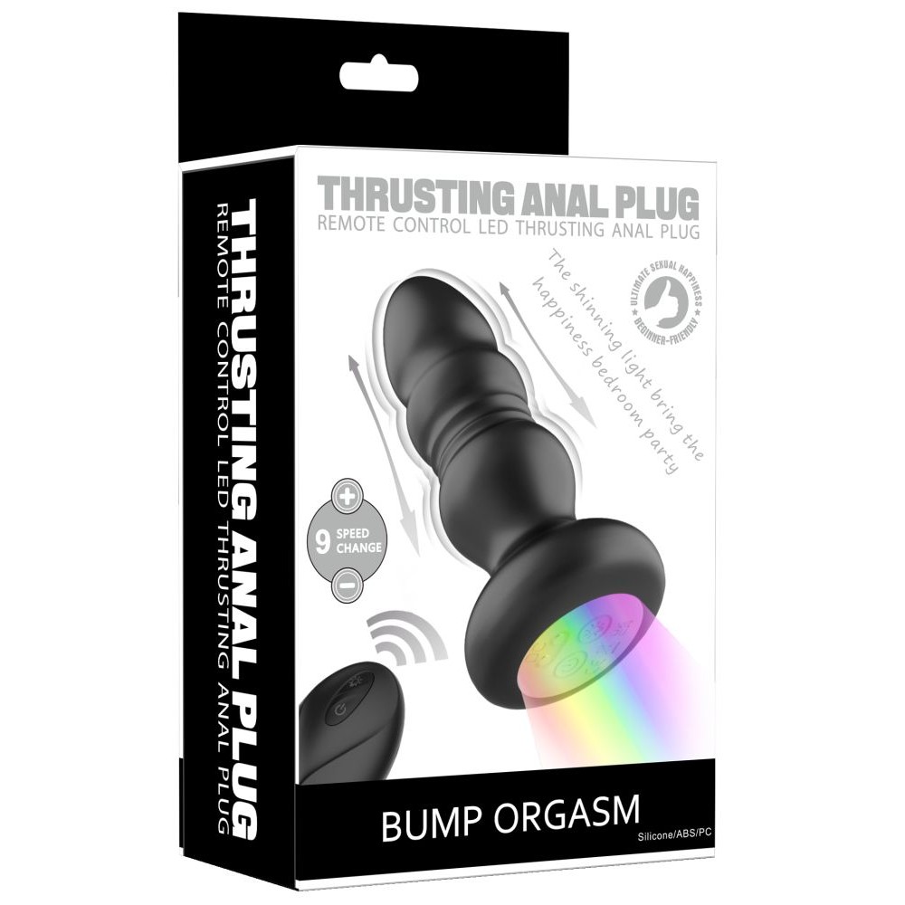 Анальная пробка с вибрацией и фрикционным механизмом, оснащенная дистанционным управлением и LED-подсветкой, создана для усиленной стимуляции и незабываемых ощущений. Игрушка предлагает 9 режимов вибрации и 9 режимов фрикций, которые обеспечивают интенсивные анальные оргазмы. Изготовленная из гладкого, шелковистого силикона, пробка безопасна для тела, а ее мягкость и эргономичный дизайн гарантируют комфорт даже при длительном использовании. Особенности включают LED-подсветку, которая придает интимной обстановке блеск, а также водонепроницаемость, позволяющую использовать пробку в душе или ванной, и магнитную зарядку, обеспечивающую лучшую влагозащиту и долговечность устройства. Время зарядки — 70 минут, а время работы — 50 минут. Управляется пробка с помощью пульта дистанционного управления. Рабочая длина - 10 см.