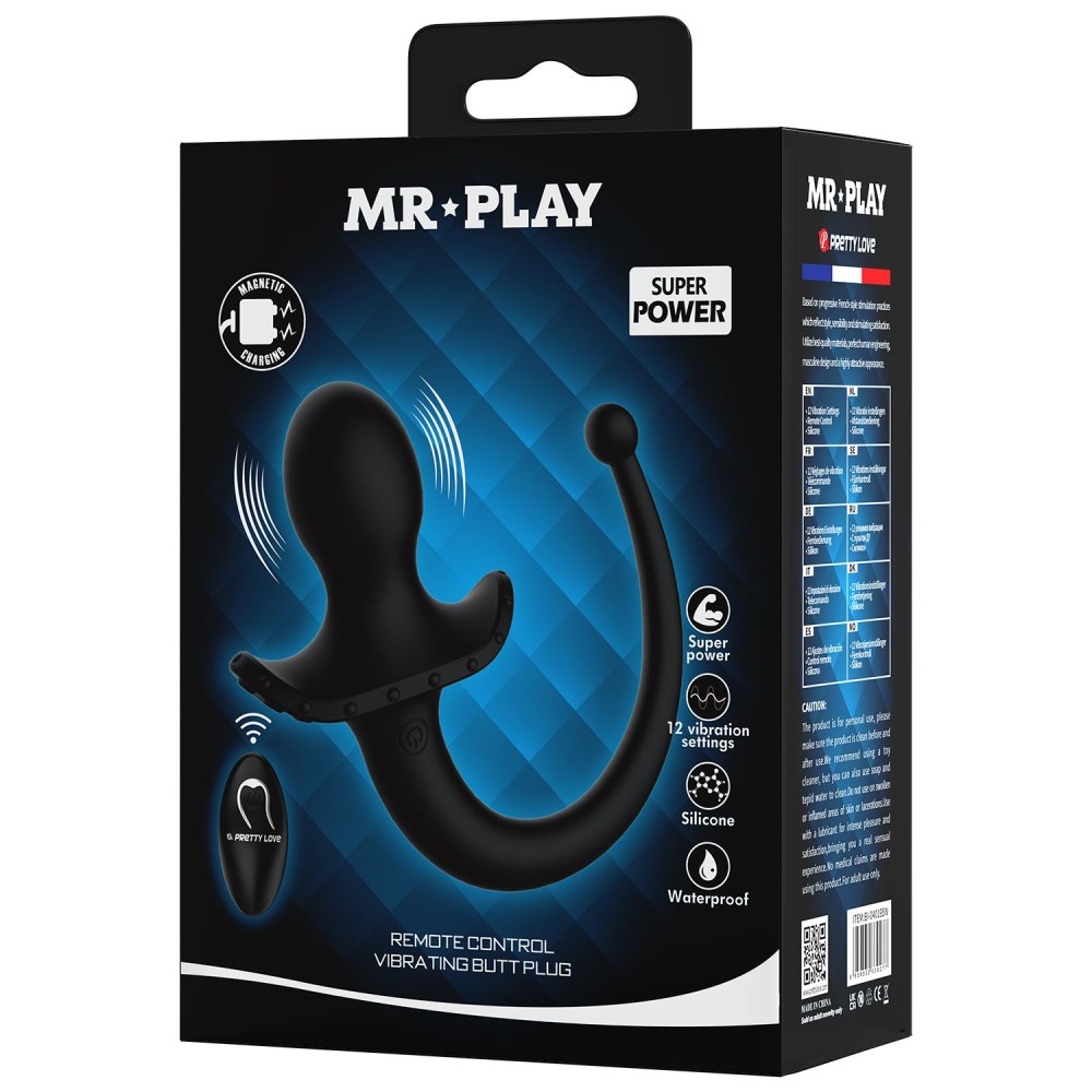 Черная анальная вибропробка с хвостом и пультом ДУ. Имеет 12 режимов вибрации и полностью водонепроницаемый корпус. Рабочая длина - 6,3 см.