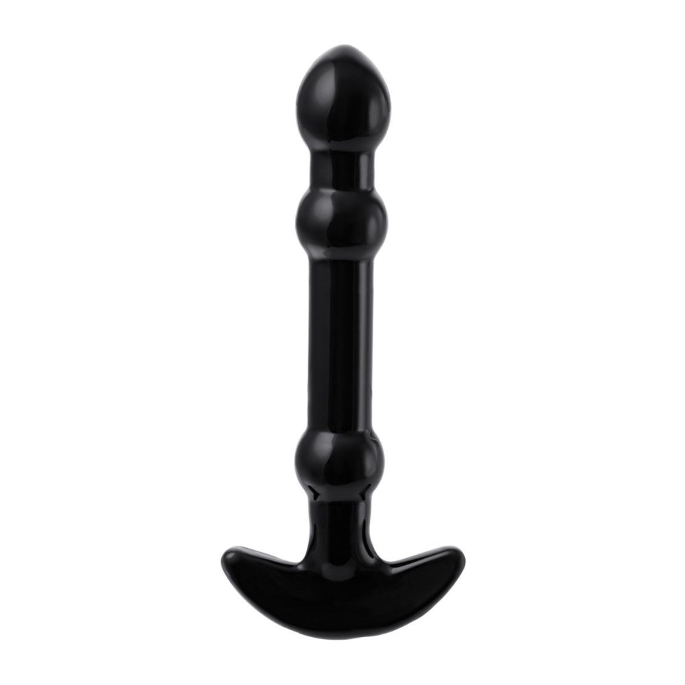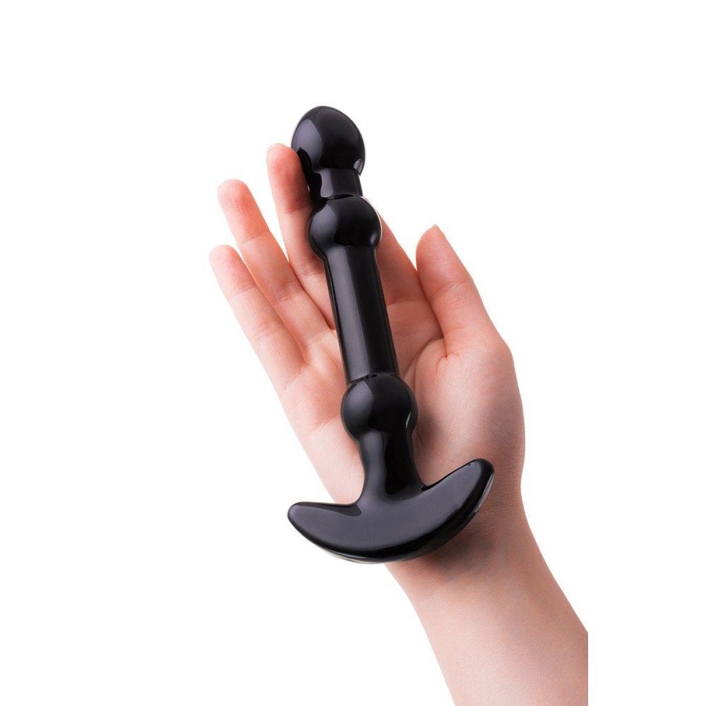 Элегантный чёрный анальный стимулятор с шариками на стволе - 19 см