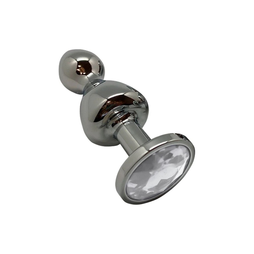 Серебристая анальная втулка Wooomy Lollypop L с прозрачным кристаллом - 10,5 см.