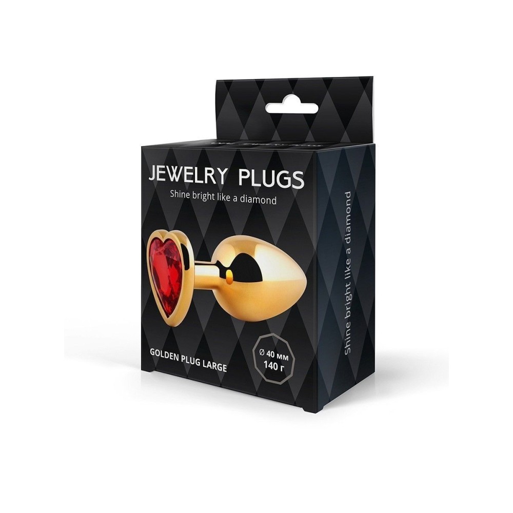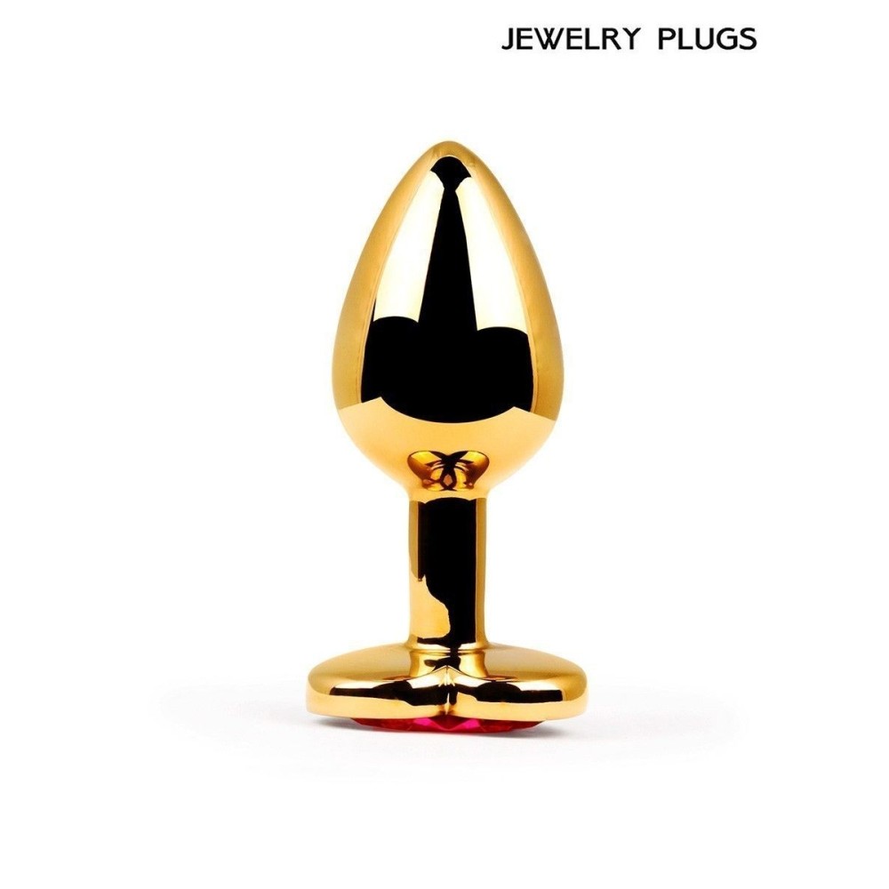 Золотистая анальная пробка с красным кристаллом - 9 см.