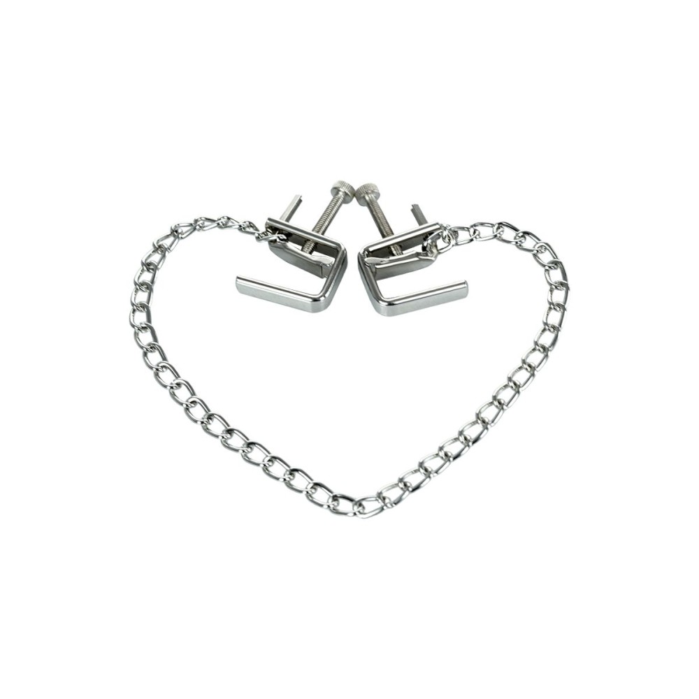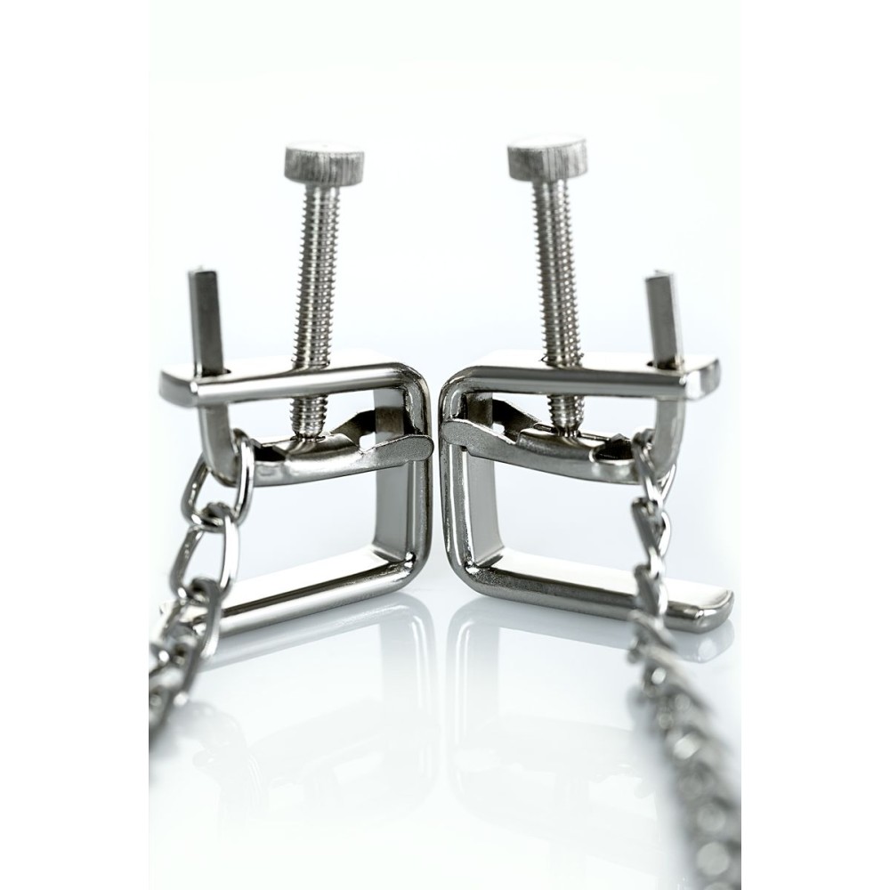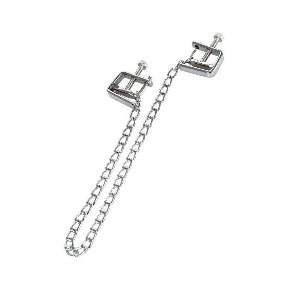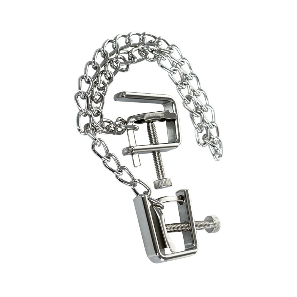 Зажимы-тиски - классическая форма для стимуляции сосков. Сила сжатия регулируется болтиком, что позволяет постепенно менять давление.