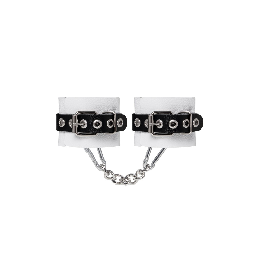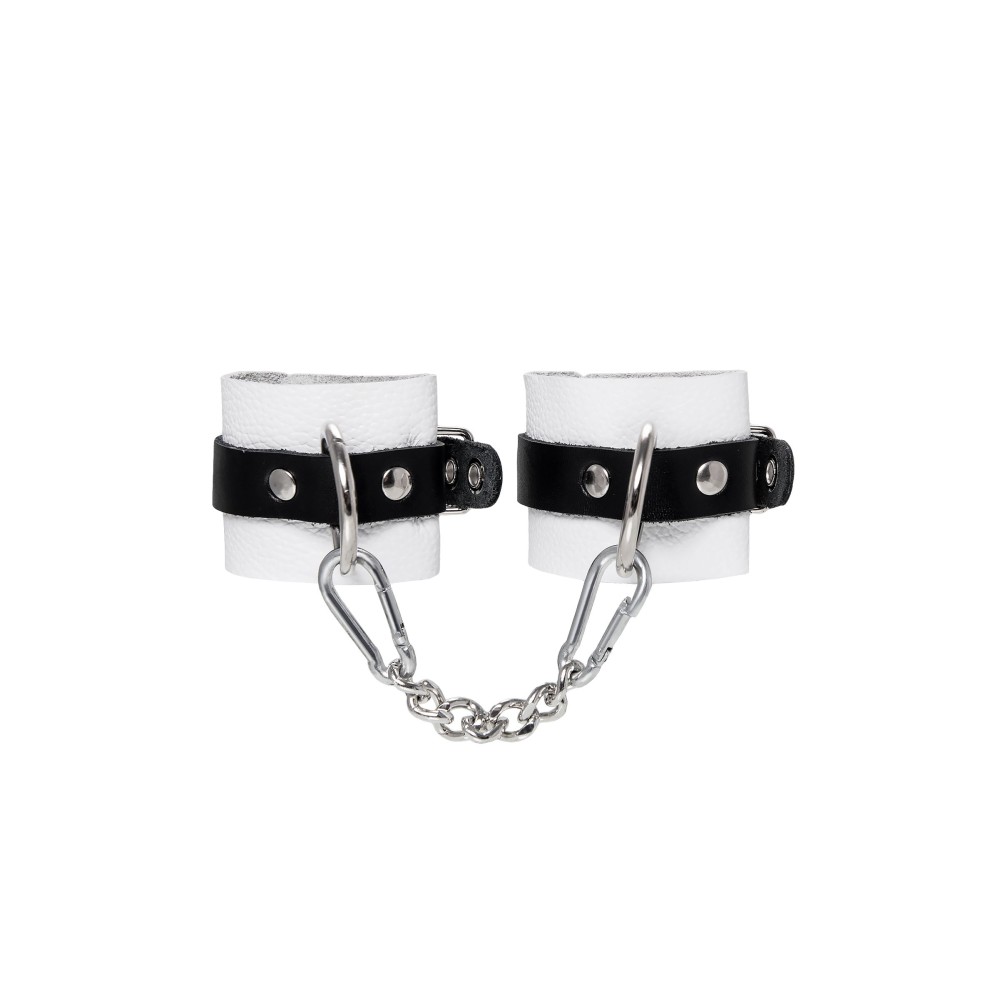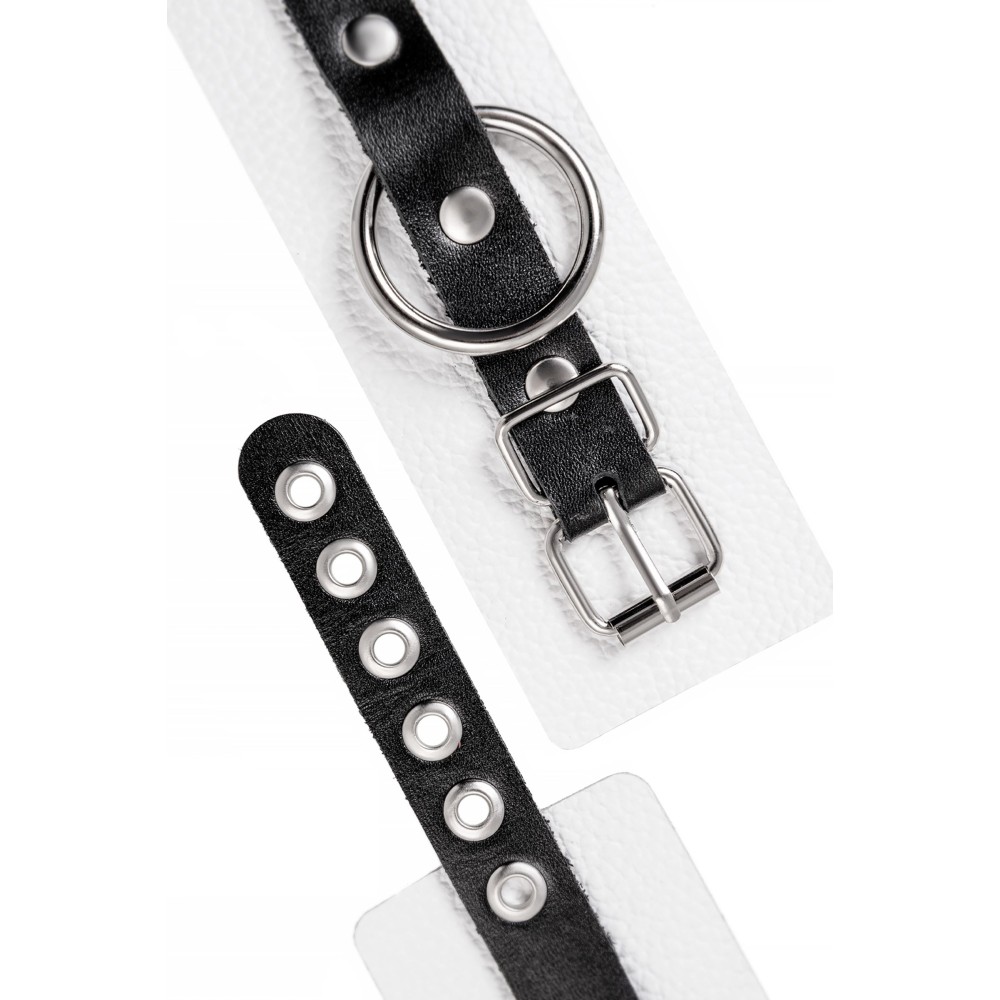 Бело-черные кожаные наручники с одним ремешком с люверсами