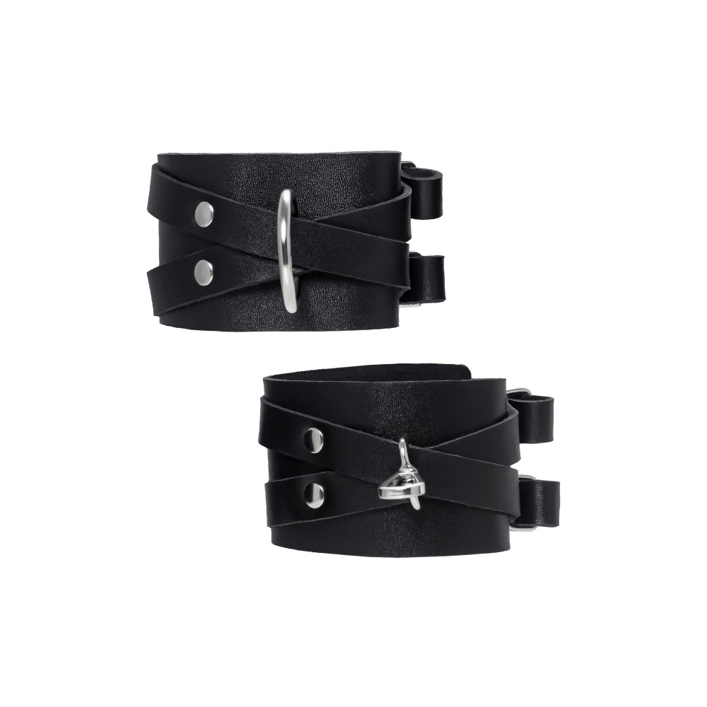 Черные кожаные оковы с двумя перекрёстными ремешками