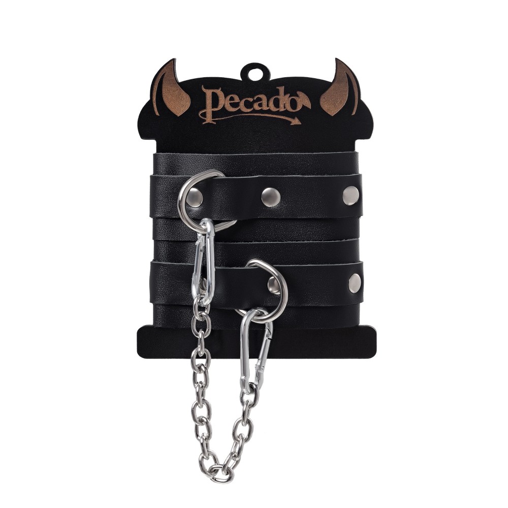 В поисках прочных оков для миниатюрных щиколоток? Тогда обратите внимание на эту модель от российского производителя Pecado. Они идеально созданы для обладательниц узких ножек. С ним вы легко зафиксируете и обездвижите сабмиссива. Каждая деталь аксессуара изготовлена с огромным трепетом вручную. Материал оков мягкий, прочный, не оставляет следов на теле. Крепкие люверсы на каждом ремешке и замок помогают легко расстёгивать и застегивать девайс. Манжеты оков соединяются между собой короткой, металлической цепью. Отлично подходят и неопытным парам, и знатокам БДСМ-культуры. Погрузитесь в мир пикантных удовольствий! Вместе с Pecado. Длина манжет – 15 см. Ширина ремешка – 4 см. Длина сцепки – 19 см.