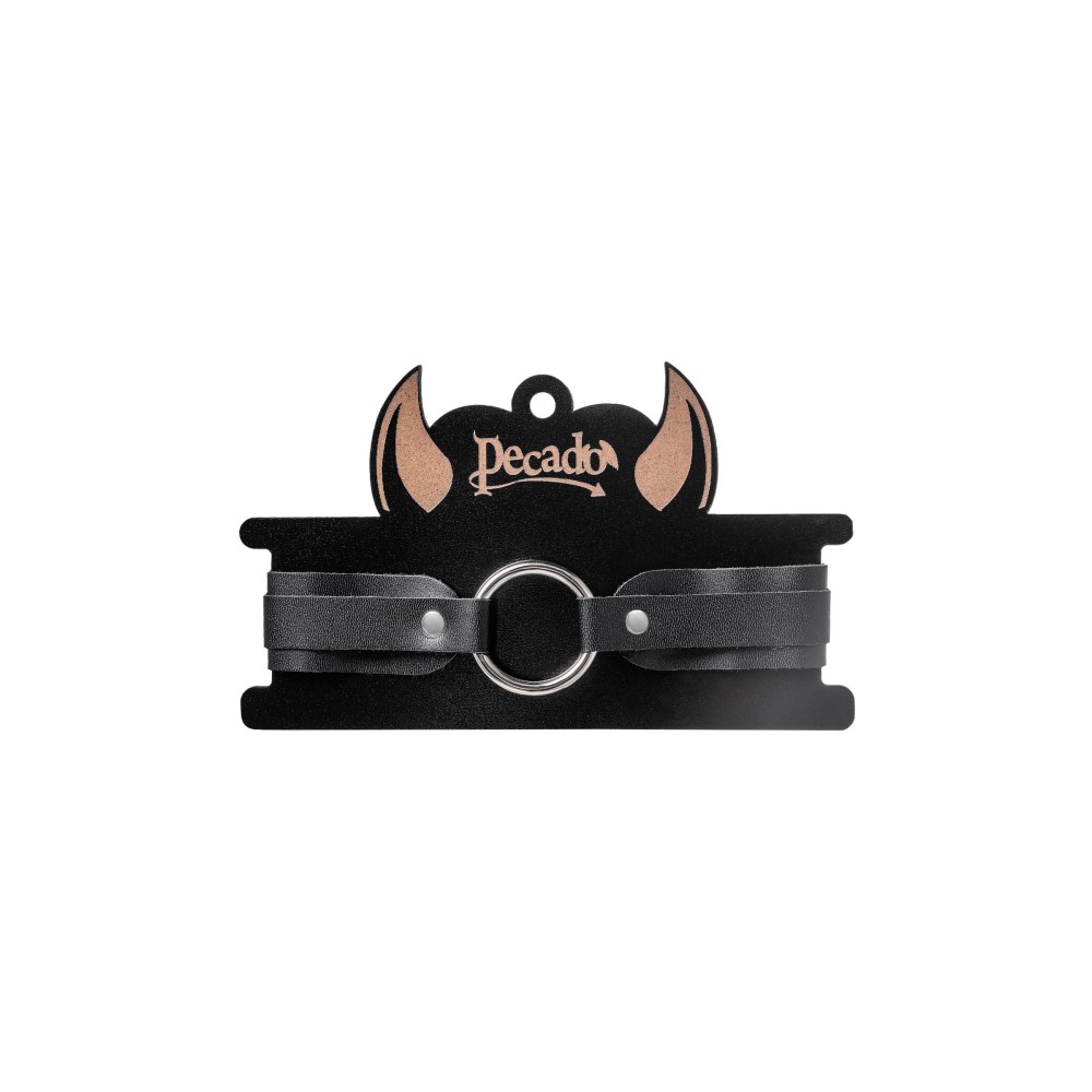 Собираетесь порадовать своего Господина? Тогда без чокера от Pecado точно не обойтись. Черный, лаконичный, он придаст образу роскошный и возбуждающий вид. Благодаря ширине в 3 см и скруглённым краям, аксессуар хорошо сидит как на женской, так и на мужской шее. Натуральная кожа тактильно приятна к телу, а ее терпкий аромат возбуждает. Надежная застежка-пряжка комфортно регулируется под необходимый размер. Благодаря ей девайс хорошо фиксируется и не болтается во время игр. Аксессуар декорирован качественной металлической фурнитурой. Большое стальное кольцо спереди изделия притягивает взгляд. К нему возможно присоединить как поводок, так и цепь любой длины. Ширина - 3 см.