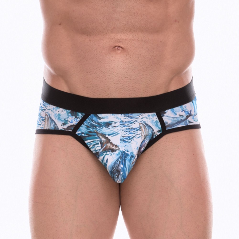 Мужские трусы-стринги с принтом в виде китов в волнах