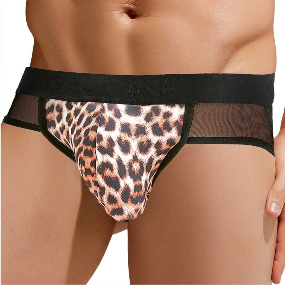 Сексуальные мужские трусы-джоки с леопардовой вставкой по центру. ...