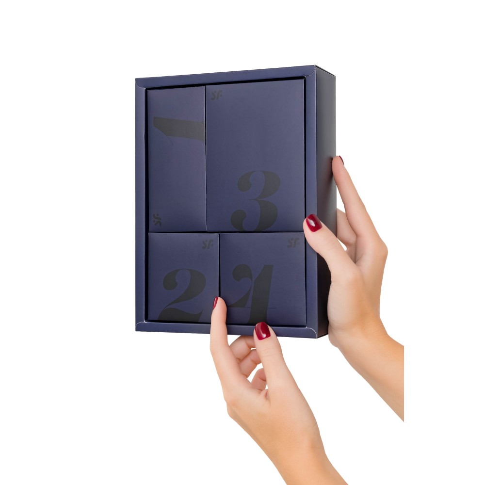 Satisfyer Advent Box – это набор для интимных радостей, который сделает ваше ожидание праздников особенно приятным! Внутри вы найдете разнообразные девайсы от знаменитого немецкого бренда Satisfyer, которые принесут вам невероятное удовольствие. С этим набором вы сможете погрузиться в мир новых сексуальных приключений и испытать незабываемые ощущения. Включайте свою любопытство и фантазию, и отправляйтесь в увлекательное путешествие. В первой коробке вы найдете чулки черного цвета с имитацией пояса Penthouse No Excuses. Это эротический аксессуар, который сделает любой день особенным. Их эластичный материал подходит на любую фигуру, обеспечивая комфорт и идеальную посадку. Мелкая сеточка и геометрические узоры соблазнительно подчеркивают формы тела, создавая сексуальный образ. Имитация пажей пояса визуально делает ноги бесконечно длинными, придавая неповторимый шарм и элегантность. Носите эти чулки как самостоятельный элемент, чтобы подчеркнуть свою соблазнительность, или дополните ими свой образ на вечеринке. Сногсшибательный эффект гарантирован, разжигая пламя страсти в вас и вашем партнере. Во второй коробке вас ждет тканевый мешочек для хранения игрушек Satisfyer. Этот стильный и удобный мешочек в прекрасном лавандовом цвете будет служить безопасным и гигиеничным местом для хранения ваших сокровищ. Его практичность и эстетическая привлекательность делают его идеальным аксессуаром для всех любителей красоты и удовольствия. Больше не нужно беспокоиться о том, где хранить свои игрушки - теперь у вас есть специальное место, которое подчеркивает вашу страсть к сексуальным приключениям. В третьей коробке набора вас ждет настоящая находка – стимулятор клитора Sugar Rush с вакуумной волновой стимуляцией Air Pulse. Этот удивительный интимный аксессуар обладает двумя мощными моторами, которые гарантируют незабываемые ощущения. С помощью 11 программ вакуумной волновой стимуляции и 12 программ вибрации вы сможете настроить интенсивность под свои предпочтения. Комбинируйте воздушную пульсацию и проникающие волны вибрации, чтобы достигать неземного блаженства каждый раз. Sugar Rush имеет игривый дизайн и компактный размер, что делает его идеальным выбором для начинающих. Кроме того, его дизайн скрывает назначение от непосвященных людей, так что вы можете быть уверены в своей конфиденциальности. Завершающий предмет в наборе – это мастурбатор Satisfyer Egg с технологией Hydro Active, которая обеспечивает невероятную стимуляцию пениса. Внутренняя текстура мастурбатора имитирует ощущение настоящей кожи, придавая вам чувственное возбуждение как по всей длине пениса, так и головке. Разнообразные формы и оттенки ощущений удивят и порадуют вас каждый раз. Одним из главных преимуществ мастурбатора Satisfyer Egg является его инновационная кибер-кожа, которая обеспечивает достаточное скольжение без необходимости добавления смазки. Это делает его идеальным выбором для соло-игр или для использования с партнером. Мастурбатор Satisfyer Egg также может быть использован партнерами обоего пола. Просто выверните его наизнанку и наденьте на ладонь для новых уровней удовольствия. Satisfyer Advent Box – это не только отличный способ порадовать себя, но и прекрасный подарок для вашего партнера или близких друзей. Подарите им незабываемые моменты радости и удовольствия, которые они смогут испы
