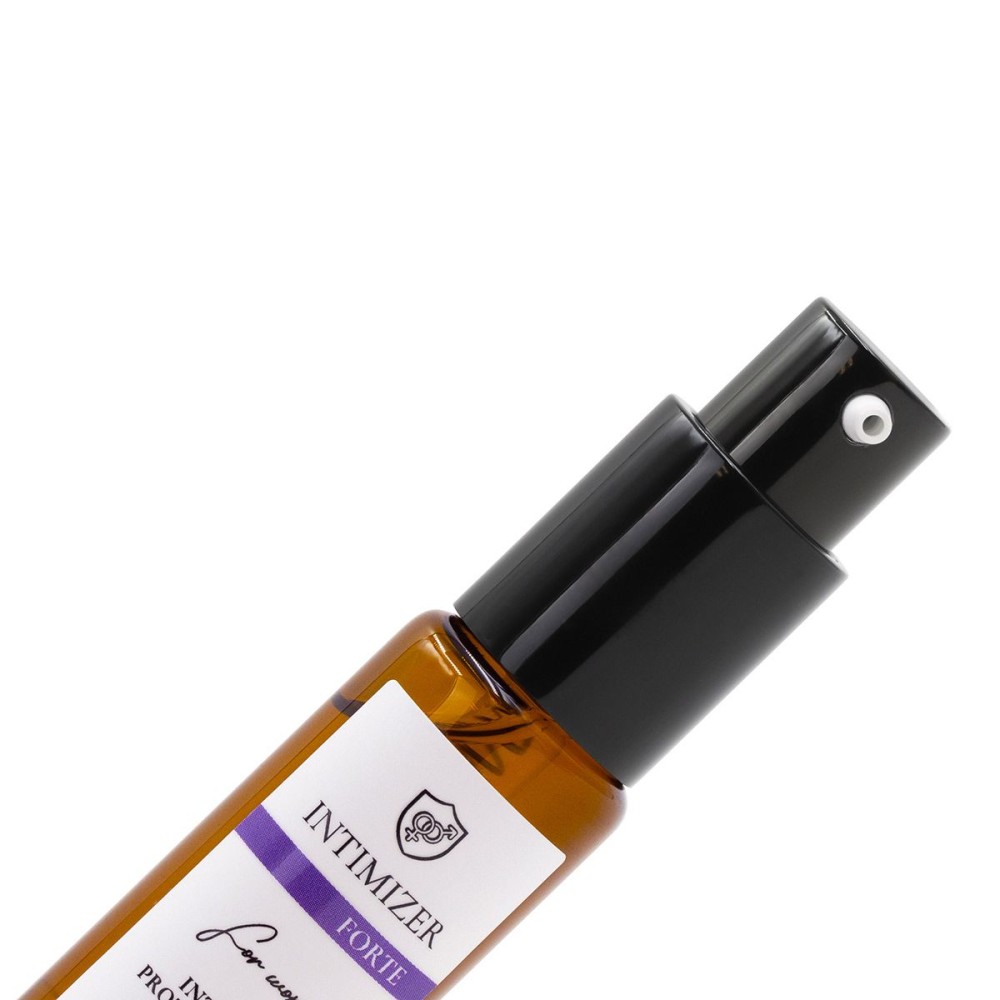Новое поколение средств для интимной гигиены от бренда INTIMIZER. Богатый натуральный состав - не имеет аналогов по количеству и концентрации активных компонентов! Комплексно выполняет все необходимые функции по поддержанию интимного здоровья и комфорта. Восстанавливает микрофлору. Оказывает длительное освежающее и ухаживающее действия, а также имеет дополнительные терапевтические свойства. Одобрен гинекологами. Эко-гель INTIMIZER на 100% заменяет привычный интимный уход. INTIMIZER FORTE – это усиленная высококонцентрированная формула широкого спектра действия, профессиональная линия средств бренда INTIMIZER. Более быстрая и надежная защита против широкого спектра патогенных микроорганизмов за счет увеличенной (на 50%) концентрации Smart частиц серебра, 30ppm. Ускоренное (на 35%) восстановление здорового микробиома интимной зоны и улучшенная профилактика возникновения дисбактериоза за счет комплекса пребиотиков и постбиотиков. В 2 раза более интенсивный увлажняющий эффект за счет еще одного нового элемента формулы – водосберегающей молекулы Aquaxyl. Еще больше привлекательности с двойной концентрацией феромона Iso E Super. Идеален для ежедневного применения и в качестве SOS-средства. Наносится и не требует смывания. Обеспечивает длительный комфорт и защиту. Предотвращает воспалительные процессы и инфекции, развитие дисбактериоза и вагинита. Помощь от молочницы. Заживляет микротрещинки, способствует ускоренному восстановлению после родов и операций. Спасает от сухости - увлажняет, питает, поддерживает эластичность и упругость. Деликатно отбеливает и омолаживает, сохраняя интимную эстетику. Гель на водной основе улучшает комфорт романтических отношений. Активные компоненты: Smart частицы серебра Молочная кислота Комплекс пребиотиков и постбиотиков (PREBIULIN, INULIN, WORESANA), Д-пантелол Fucogel, Критмум морской, Hydrovance, Биосахаридная смола, Гидролат календулы Гидролат Ромашки. Не содержит синтетических отдушек. Имеет чувственный аромат пачули.