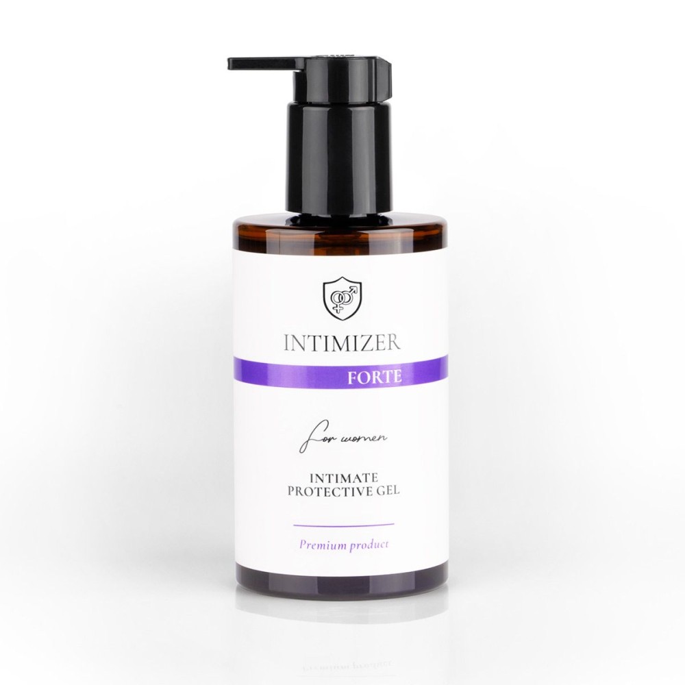 Новое поколение средств для интимной гигиены от бренда INTIMIZER. Богатый натуральный состав - не имеет аналогов по количеству и концентрации активных компонентов! Комплексно выполняет все необходимые функции по поддержанию интимного здоровья и комфорта. Восстанавливает микрофлору. Оказывает длительное освежающее и ухаживающее действия, а также имеет дополнительные терапевтические свойства. Одобрен гинекологами. Эко-гель INTIMIZER на 100% заменяет привычный интимный уход. INTIMIZER FORTE – это усиленная высококонцентрированная формула широкого спектра действия, профессиональная линия средств бренда INTIMIZER. Более быстрая и надежная защита против широкого спектра патогенных микроорганизмов за счет увеличенной (на 50%) концентрации Smart частиц серебра, 30ppm. Ускоренное (на 35%) восстановление здорового микробиома интимной зоны и улучшенная профилактика возникновения дисбактериоза за счет комплекса пребиотиков и постбиотиков. В 2 раза более интенсивный увлажняющий эффект за счет еще одного нового элемента формулы – водосберегающей молекулы Aquaxyl. Еще больше привлекательности с двойной концентрацией феромона Iso E Super. Идеален для ежедневного применения и в качестве SOS-средства. Наносится и не требует смывания. Обеспечивает длительный комфорт и защиту. Предотвращает воспалительные процессы и инфекции, развитие дисбактериоза и вагинита. Помощь от молочницы. Заживляет микротрещинки, способствует ускоренному восстановлению после родов и операций. Спасает от сухости - увлажняет, питает, поддерживает эластичность и упругость. Деликатно отбеливает и омолаживает, сохраняя интимную эстетику. Гель на водной основе улучшает комфорт романтических отношений. Активные компоненты: Smart частицы серебра Молочная кислота Комплекс пребиотиков и постбиотиков (PREBIULIN, INULIN, WORESANA), Д-пантелол Fucogel, Критмум морской, Hydrovance, Биосахаридная смола, Гидролат календулы Гидролат Ромашки. Не содержит синтетических отдушек. Имеет чувственный аромат пачули.