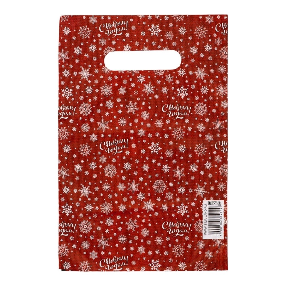 Красный подарочный новогодний пакет с вырубной ручкой (20х30 см). ...