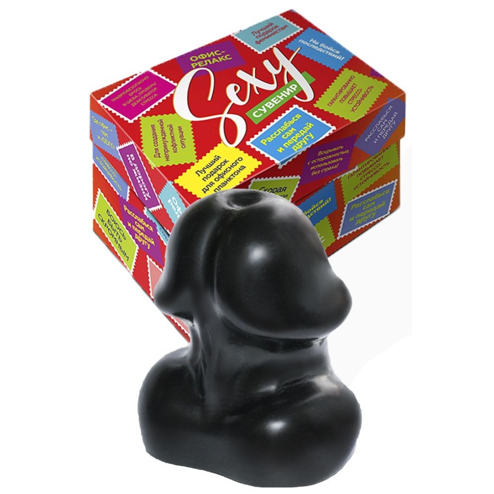 Сувенир в виде головки члена из ПВХ черного цвета. Упакован в яркую подарочную коробку и бархатный мешочек. ...
