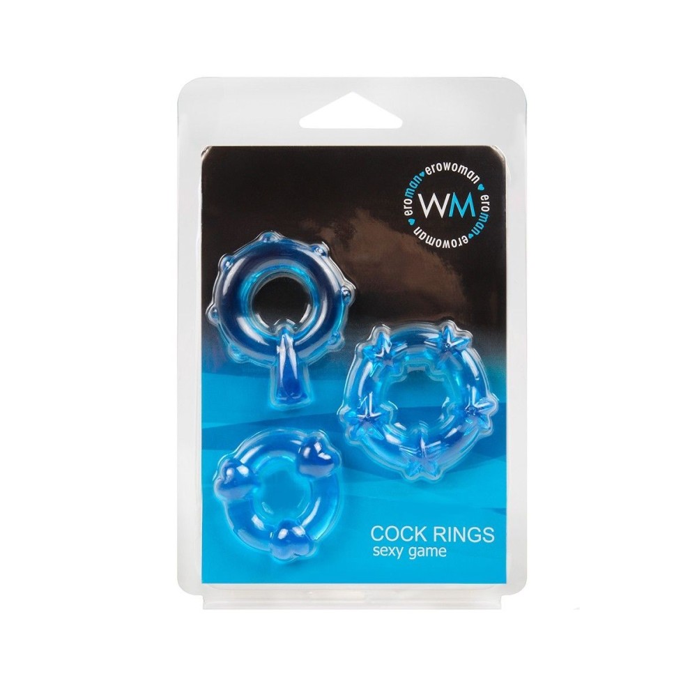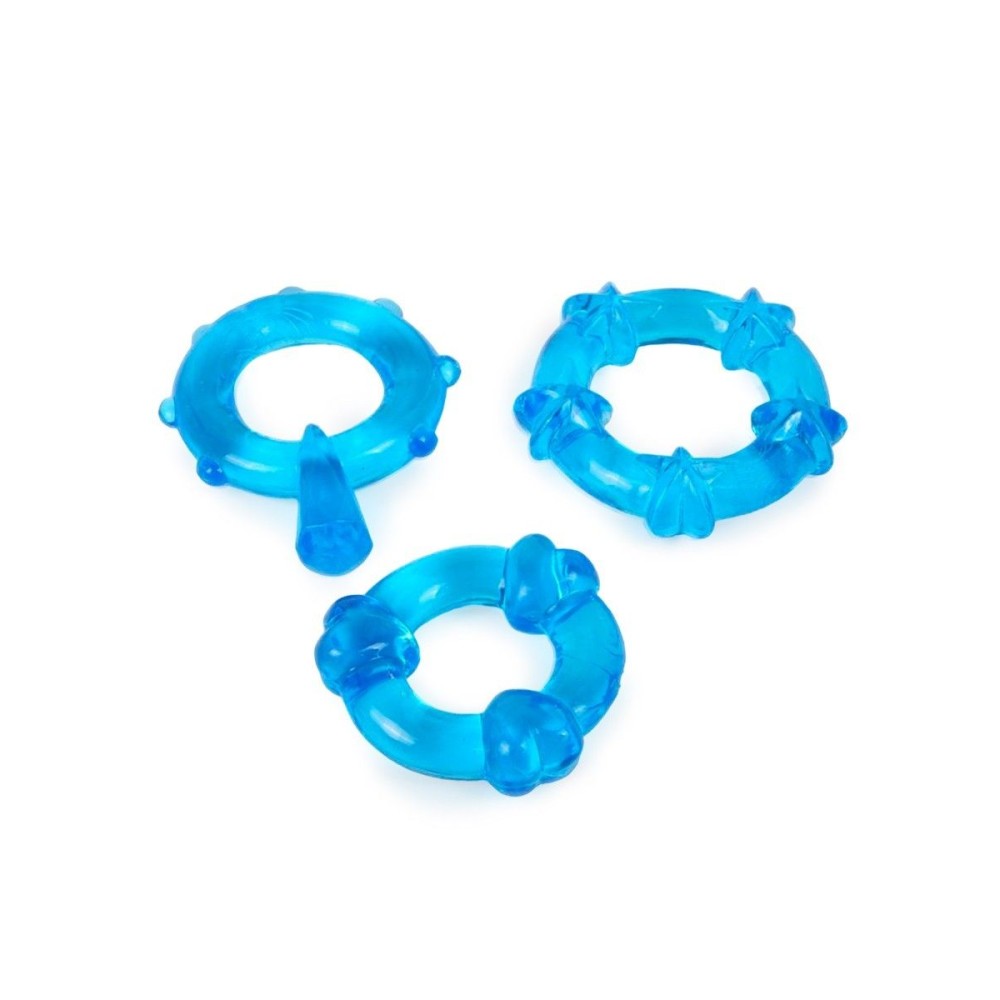 Набор из 3 синих эрекционных колец с различным рельефом