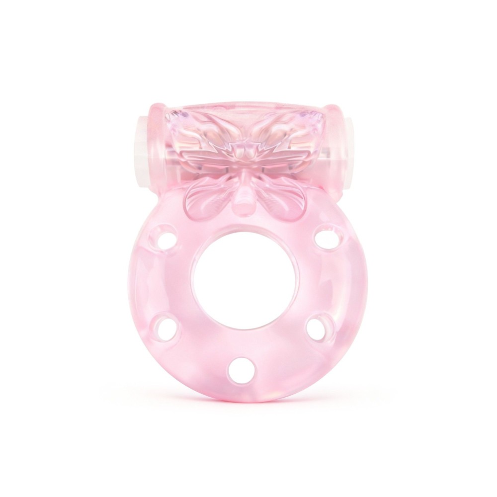 Розовое эрекционное виброкольцо с бабочкой