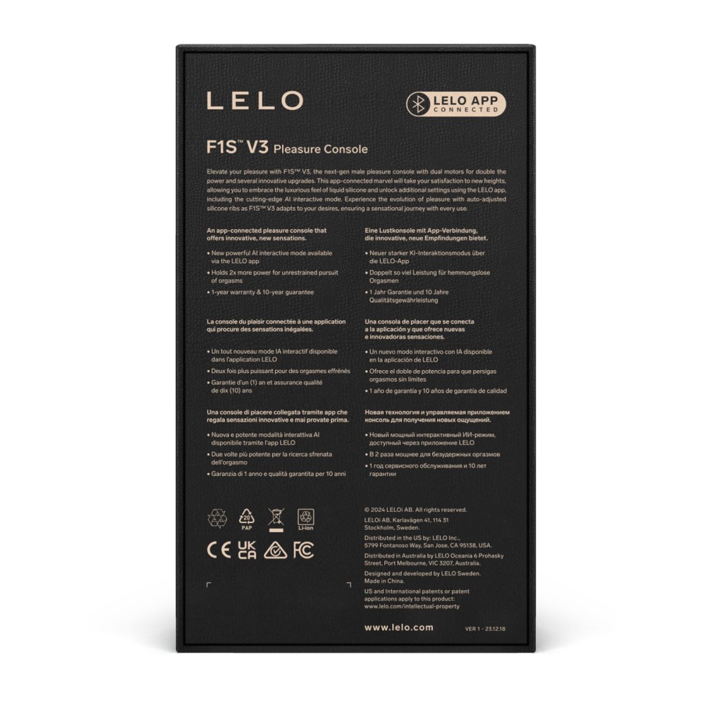 F1S V3 — это секс-игрушка нового поколения, которая оснащена усовершенствованными функциями, чтобы подарить вам совершенно новый опыт удовольствия. Она не пытается имитировать какие-либо известные ощущения, такие как фелляция или проникновение она стимулирует фаллос звуковыми волнами со всех сторон, не требуя дополнительных толчковых движений. Мастурбатор подключается к приложению и имеет 8 настроек вибрации, приводимых в действие 2 моторами. Благодаря интерактивному режиму ИИ, он в режиме реального времени преобразует каждое ваше движение в зашифрованную обратную связь и реагирует индивидуально настроенными вибрациями вдоль вашего пениса. Результатом является сенсационное чувство погружения, окруженное автоматически регулируемыми ребрами из жидкого силикона, которые еще больше усиливают это уникальное ощущение. Как работает интерактивный режим ИИ Внутри F1S V3 датчик обратной связи производительности, на основе анализа движений устройства, передает зашифрованную информацию в реальном времени через Bluetooth. Затем режим AI INTERACTIVE в приложении LELO обрабатывает данные в реальном времени, идеально синхронизируя интенсивность мотора и реакцию движения с движением устройства. Таким образом, F1S V3 обеспечивает приятный, плавный и уникальный опыт для каждого пользователя. F1S V3 использует технологию SenSonic для генерации звуковых импульсов, которые резонируют вокруг пениса для совершенно нового ощущения. Автоматически регулируемые мягкие, эластичные ребра из жидкого силикона дополнительно усиливают стимуляцию. Запатентованная технология Cruise Control, гарантирует отсутствие снижения интенсивности. Новые силиконовые ребра обеспечивают циркуляцию воздуха, исключая создание воздушных карманов и обеспечивая дополнительную стимуляцию. Два синхронизированных мотора стимулируют нервные окончания и ствол полового члена по всей длине, обеспечивая ощущения без необходимости движения руки. Стимулятор 100% водонепроницаемый, идеален для использования в душе и ванне. Зарядка 2 ч. Время непрерывной работы до 2 часов. Рабочая длина - 11 см.