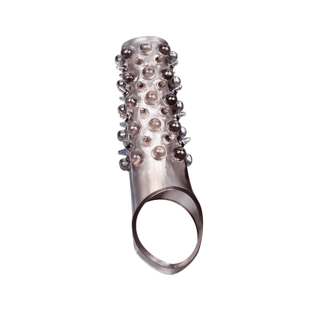 Дымчатая насадка на пенис с шипами и выпуклостями - 12 см.