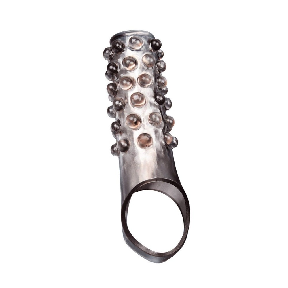 Дымчатая насадка на пенис с выпуклостями - 11 см.