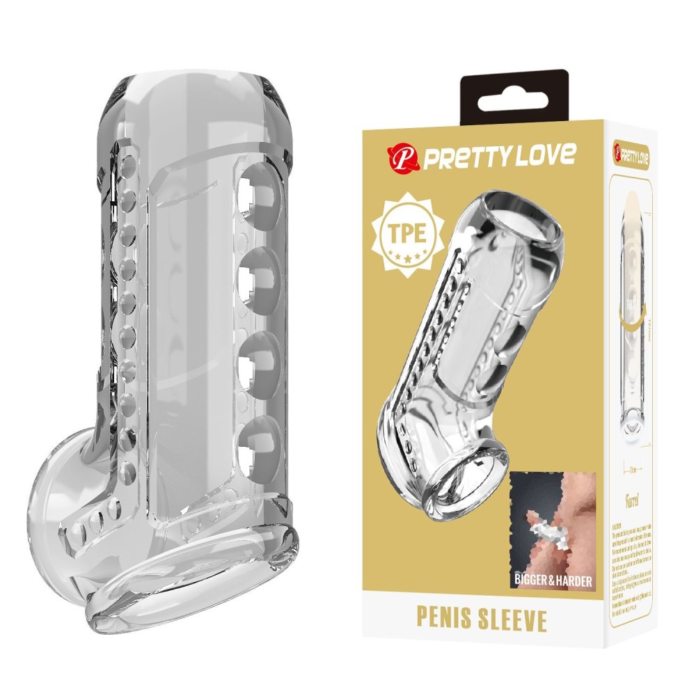 Насадка на пенис с отверстием для мошонки увеличит диаметр члена подарит дополнительную стимуляцию партнерше за счет внешнего рельефа. Насадка не будет снижать чувствительность, поскольку головка остается открытой.