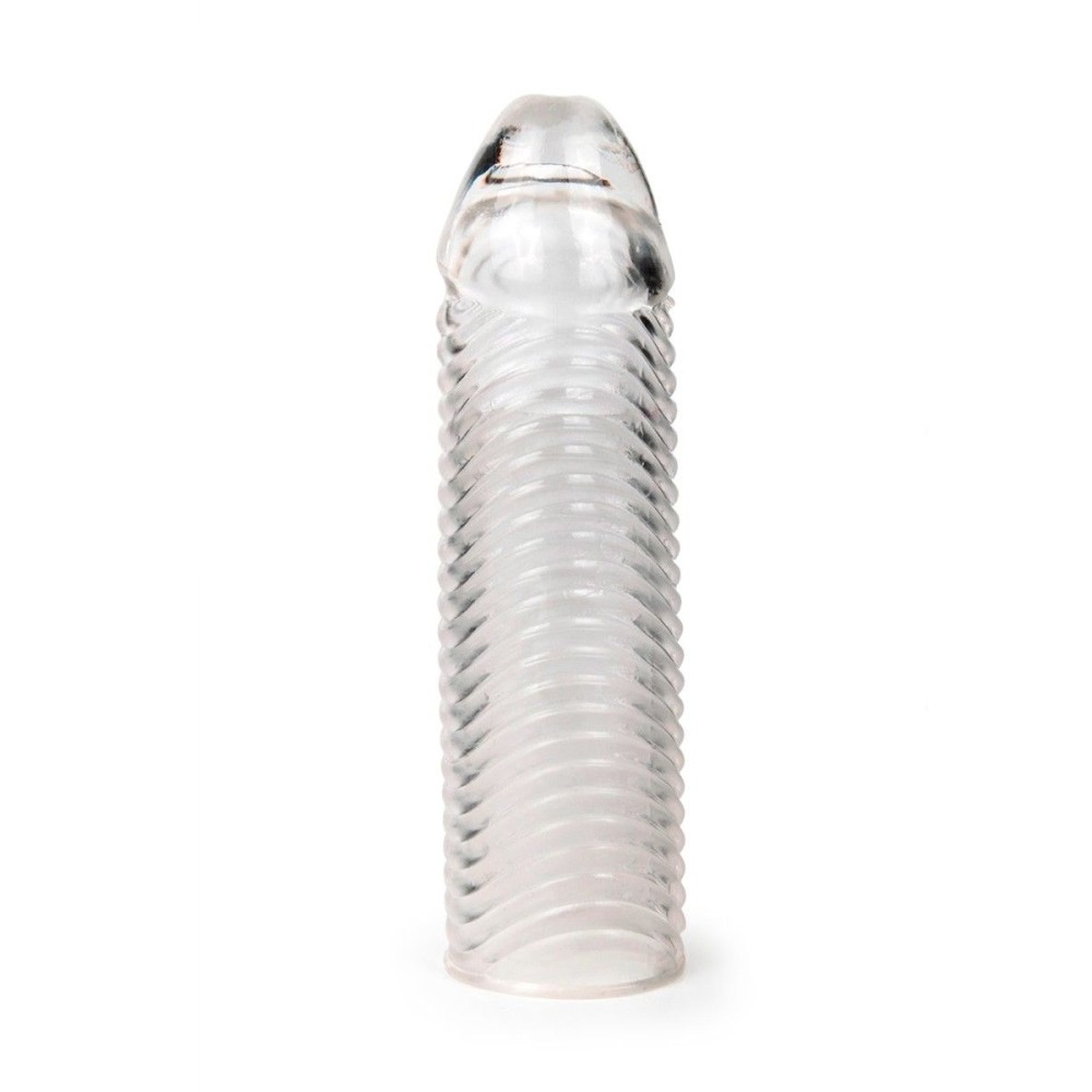 Прозрачная насадка на пенис для увеличения длины и толщины полового члена. Поможет мужчине избавится от комплексов и почувствовать себя настоящим мачо, а его партнёрше подарит множество потрясающих эмоций и незабываемый оргазм. Ярко выраженная мягкая головка, рельефная поверхность счёт трения о стенки влагалища или ануса усилит возбуждение женщины. Интимный аксессуар изготовлен из эластичного материала. Хорошо мнётся и тянется.