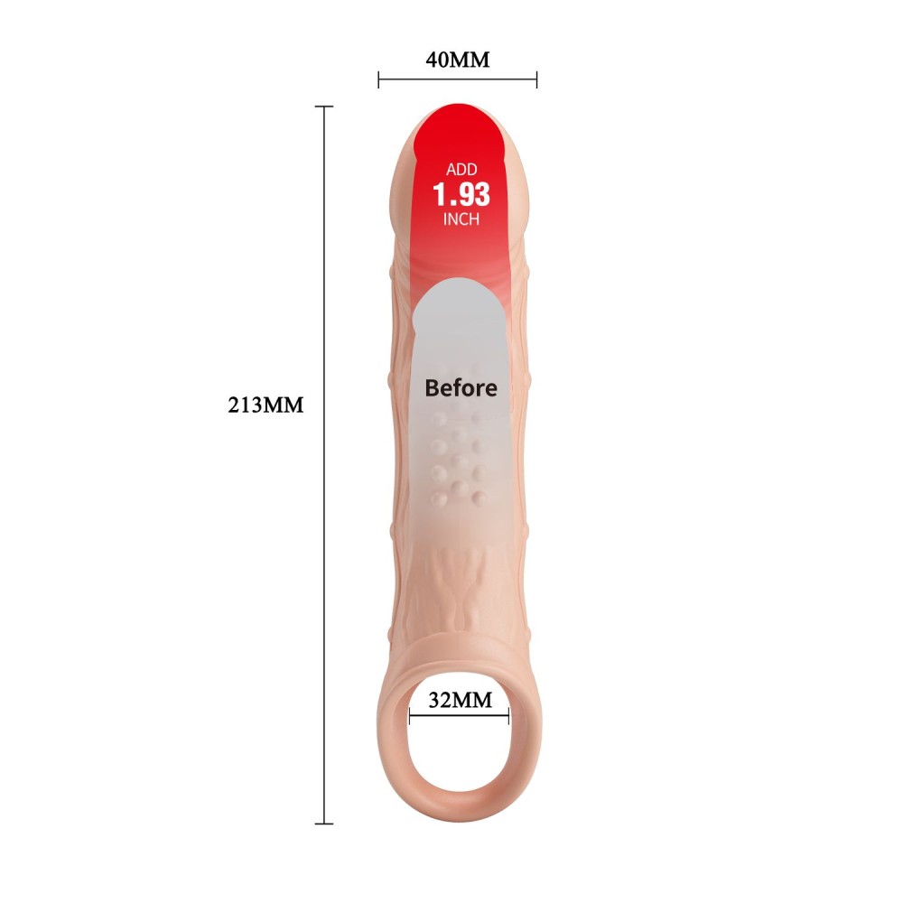 Телесная удлиняющая насадка с рельефом и вибрацией Brad - 21,3 см.