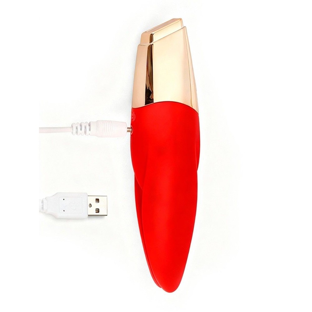 Красный мини-вибратор с раздвоенным кончиком - 12,3 см.
