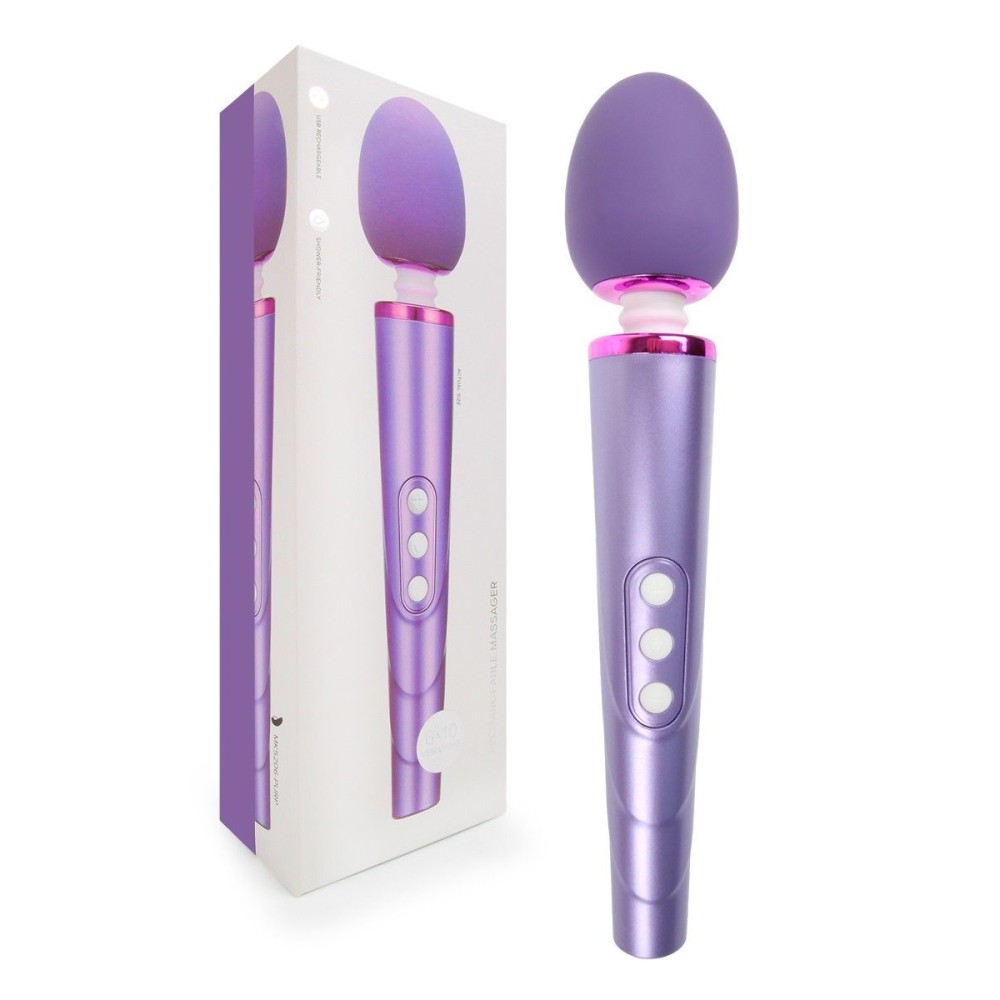 Сиреневый жезловый вибромассажер с головкой на гибкой шее. Перезаряжаемый. Имеет 6 режимов вибрации.