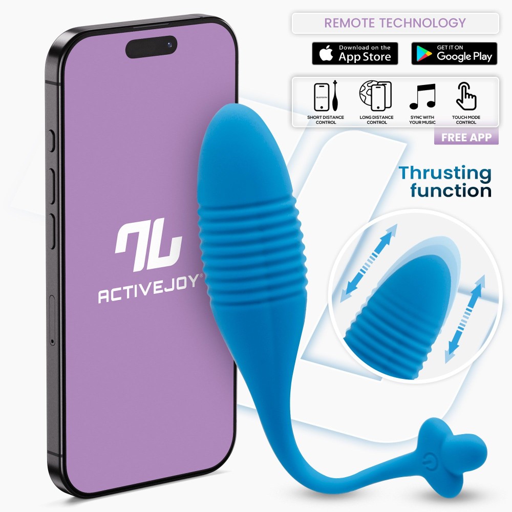 Синее интерактивное виброяйцо с поступательными движениями Thrusting Egg