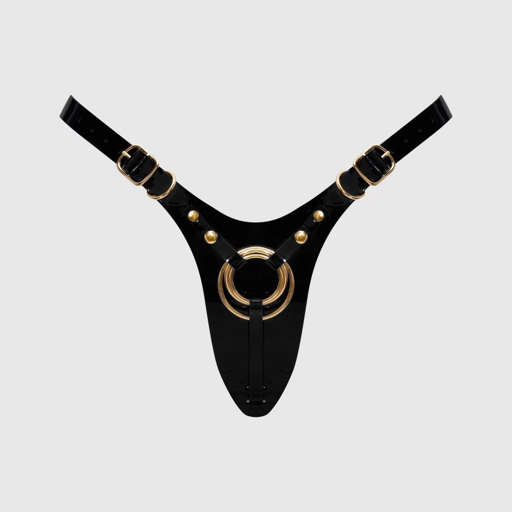 Роскошный пояс для страпона Fabulous бросает вызов условностям, переосмысливая классические стринги через призму бескомпромиссного гламура. Каждая деталь тщательно продумана: минималистичная спинка-стринги деликатно подчеркивает линию ягодиц, а глянцевое лаковое покрытие придает люксовый вид. Регулируемые лямки обеспечивают идеальную посадку и полную свободу движений. Три сменных металлических кольца гарантируют надежное крепление фаллоимитаторов разного размера. Диаметр колец - 3,5, 4 и 5 см.
