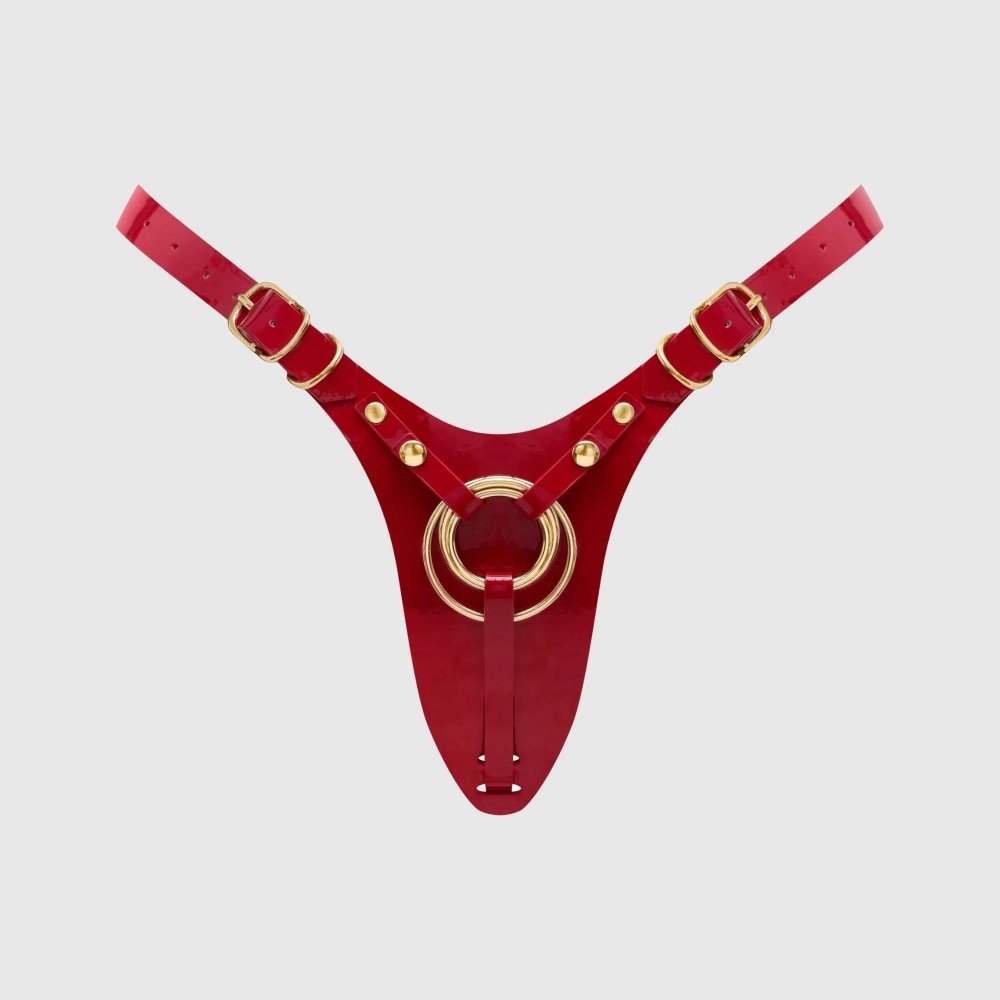 Роскошный пояс для страпона Fabulous бросает вызов условностям, переосмысливая классические стринги через призму бескомпромиссного гламура. Каждая деталь тщательно продумана: минималистичная спинка-стринги деликатно подчеркивает линию ягодиц, а глянцевое лаковое покрытие придает люксовый вид. Регулируемые лямки обеспечивают идеальную посадку и полную свободу движений. Три сменных металлических кольца гарантируют надежное крепление фаллоимитаторов разного размера. Диаметр колец - 3,5, 4 и 5 см.