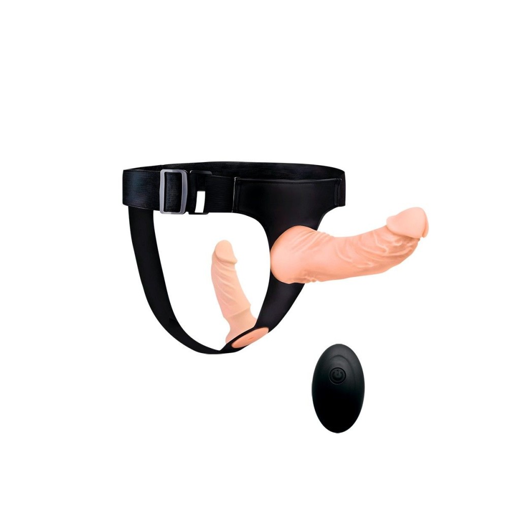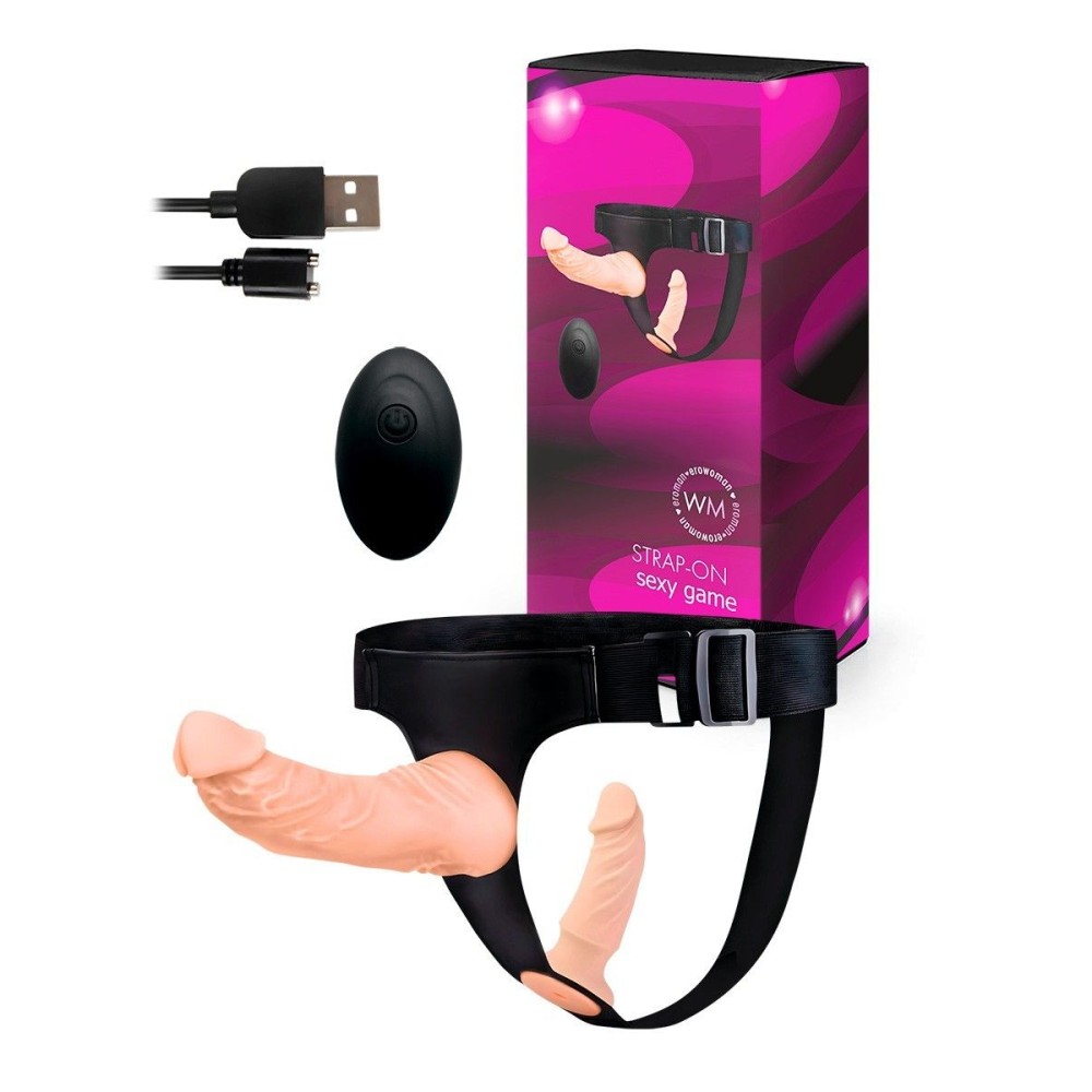 Женский страпон с 2 насадками, вибрацией и пультом ДУ