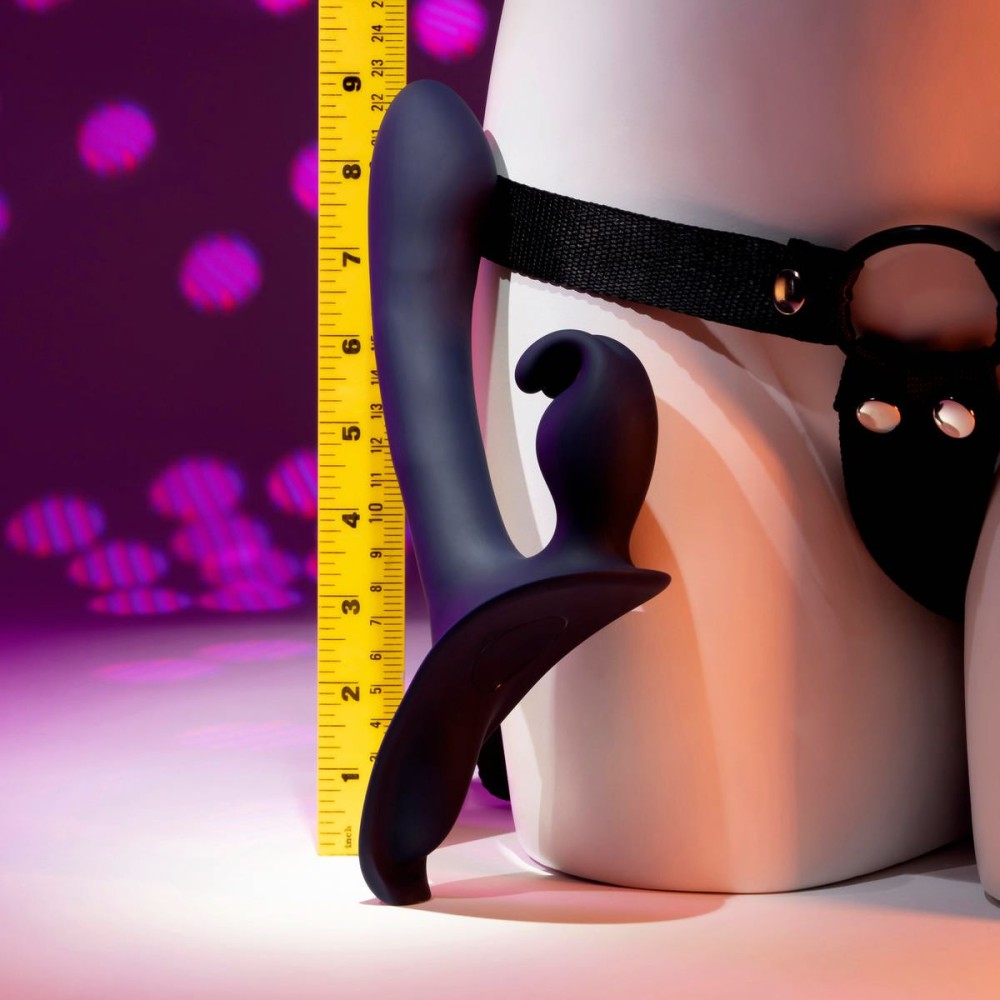 Погрузитесь в океан взаимного наслаждения! Этот инновационный страпон-вибратор с тремя мощными моторами перевернет ваши представления об интимной близости. Уникальная конструкция обеспечивает интенсивную стимуляцию одновременно для обоих партнеров, даря невиданные ранее ощущения. Три зоны мощного удовольствия: Изогнутый основной стержень: идеально повторяет анатомические изгибы для глубокой точечной стимуляции G-зоны или простаты. Максимально реалистичные ощущения! Широкие “зайчьи ушки” клиторального стимулятора: охватывают и мощно вибрируют самую чувствительную зону, даря непревзойденное наслаждение принимающему партнеру. Третий мотор в “ластовице”: уникально! Специальный виброэлемент у основания контактирует с телом активного партнера, обеспечивая приятную стимуляцию и вовлеченность в процесс. Наслаждайтесь вместе в полной мере! Полная гибкость: весь вибратор выполнен из высококачественного, гипоаллергенного силикона (без фталатов и латекса!) и обладает исключительной гибкостью. Он естественно двигается вместе с вашими телами, обеспечивая комфорт и идеальный контакт на протяжении всей игры. Идеальная посадка и контроль: регулируемые ремни на талию и бедра из прочного полиэстера гарантируют надежную и комфортную фиксацию для любого телосложения. Усиленное крепление-кольцо надежно удерживает вибратор, обеспечивая точное позиционирование и уверенное управление процессом. Плотное прилегание без дискомфорта! Мощь и универсальность: 9 скоростей и режимов вибрации (от нежных пульсаций до мощных волн) позволяют найти идеальный ритм для обоих партнеров. Все три мотора управляются одновременно с одного пульта для синхронного наслаждения. Удобное дистанционное управление: компактный пульт (ABS-пластик) с магнитной зарядкой обеспечивает плавное переключение режимов на расстоянии до 4.5 метров. Передайте управление партнеру или контролируйте процесс сами! Современная зарядка: и вибратор, и пульт заряжаются через USB с помощью удобных магнитных кабелей (в комплекте). Водонепроницаемость: водонепроницаемый (IPX7) и погружаемый корпус открывает двери для игр в душе, ванной или просто легкой очистки. Рабочая длина - 14,6 см.