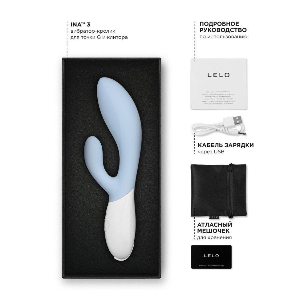 Нежно-голубой вибратор-кролик Lelo Ina 3 - 20 см.