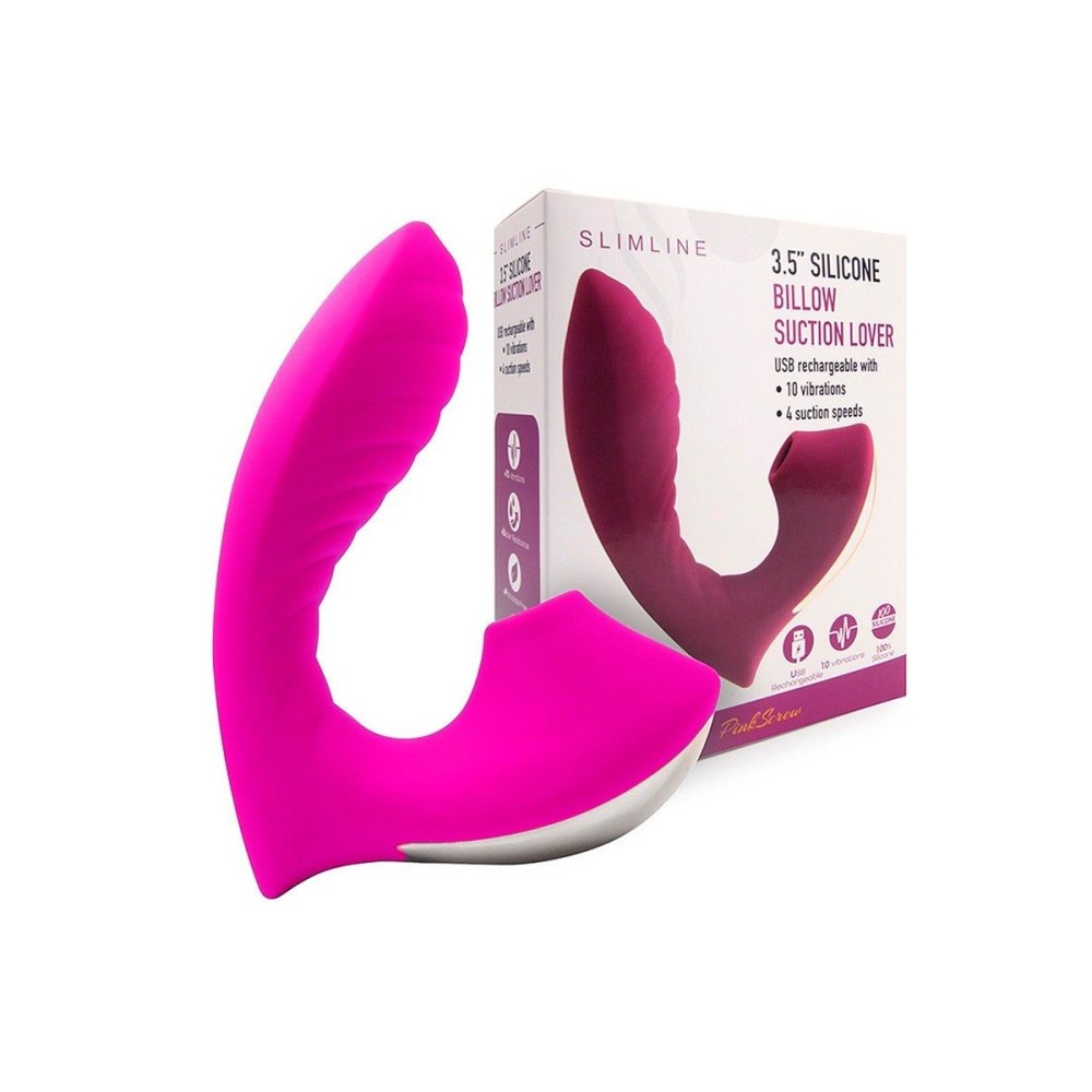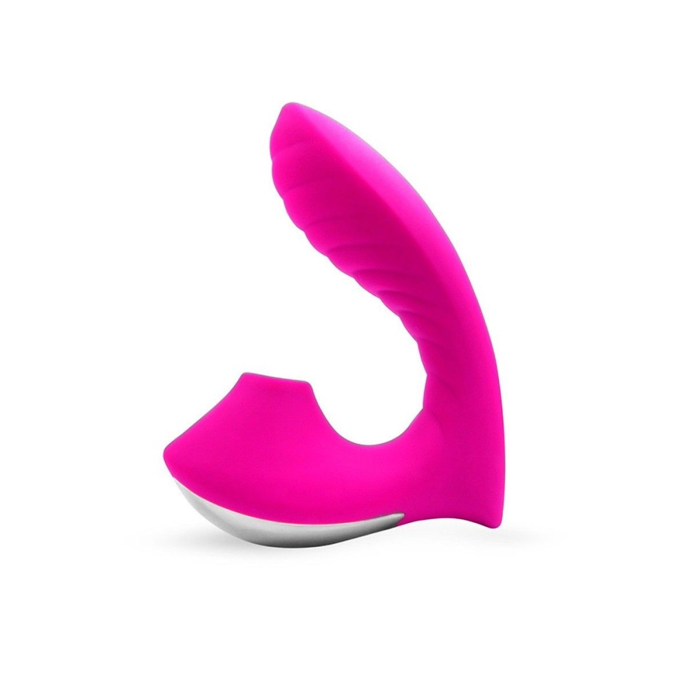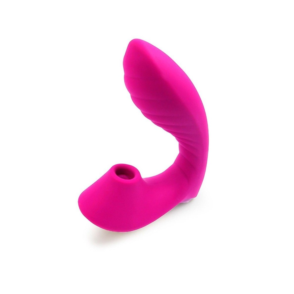 Ярко-розовый вибромассажер с вакуумной стимуляцией клитора